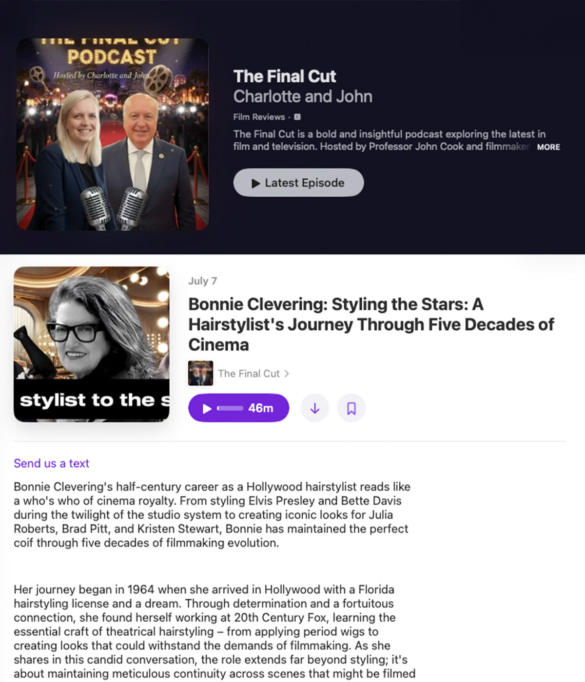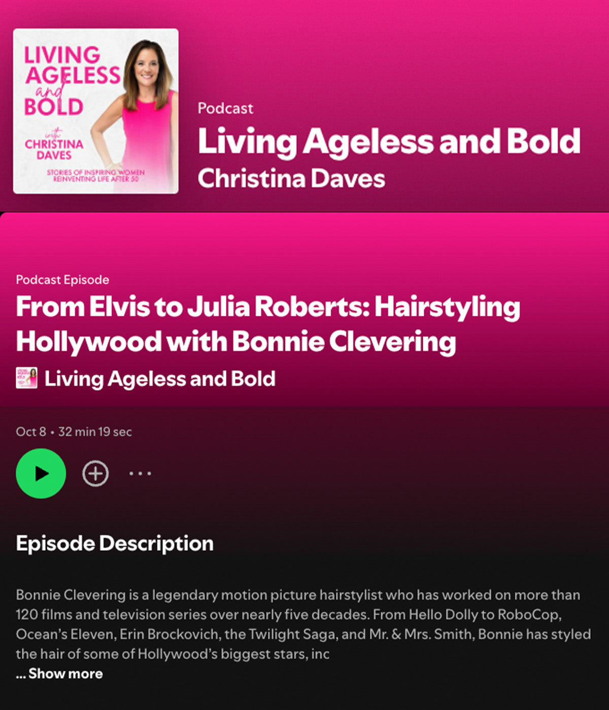 Continuity: Life Beyond the Credits is a memoir and visual history of Bonnie Clevering’s nearly 50-year career on and off the sets of notable Hollywood films and TV productions. Revered as one of the most accomplished motion picture hair designers, Bonnie has styled the hair of acclaimed Hollywood actors by the hundreds with illustrious creative fashion, including Julia Roberts, George Clooney, Bette Davis, Barbara Streisand, Jennifer Aniston, Keanu Reeves, Al Pacino, Tim Allen, and Kristen Stewart. Yes, the infamous layered and full-bodied tresses of Twilight's Bella Swan were created by Bonnie!